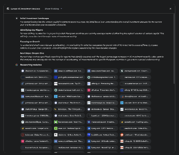 - Google Deep Research 是一个代表我们分析使用 Google 搜索作为工具获得的来源的 Agent。它反思、规划并执行。