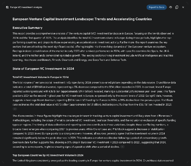 图 3:Google Deep Research Agent 生成的最终输出,代表我们分析使用 Google 搜索作为工具获得的来源。