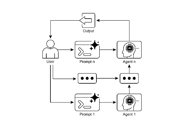 图 2:提示词链模式:Agent 从用户接收一系列提示词,每个 Agent 的输出作为链中下一个 Agent 的输入。
